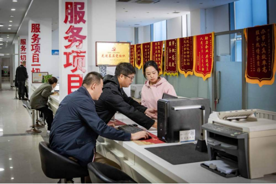 辽宁(营口)沿海产业基地行政审批局项目审批大厅的工作人员,正在办理项目服务相关事项(李国颖/摄,来源:学习强国)